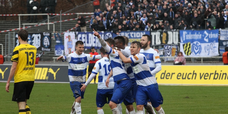80. Minute: 3:1! Starkes Kombinationsspiel der Meidericher! Diagonalball von Janjic auf Klotz, der das Leder direkt vor dem Tor der Gastgeber querlegt, auf den hereinstürmenden Dausch. Die Nummer sechs der Zebras schiebt im ersten Kontakt ein und macht sein zweites Tor in der Partie!