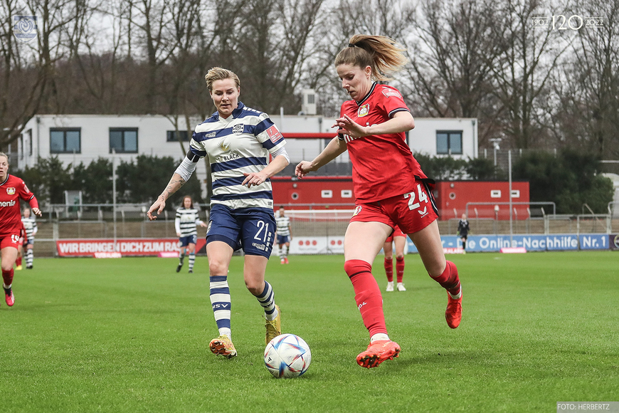 In der ersten Hälfte hatten unsere Zebras nach knapp 12 Minuten die Chance in Führung zu gehen. Ilic eroberte den Ball stark im Mittelfeld und schickte rechts Halverkamps, die direkt abschloss. Der Ball sprang von der Latte ab, den Abstauber konnte Hoppius leider nicht verwerten. Stattdessen erzielten die Gastgeberinnen nach einer guten halben Stunde durch Wieder das 1:0.