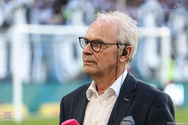 MSV-Stadionsprecher Stefan Leiwen begrüßt dann Bernard Dietz, Michael Bella und Meike Kämper zur Talkrunde. Das lang geplante, aber doch sehr aktuelle Thema: Die Nationalmannschaft damals und heute.