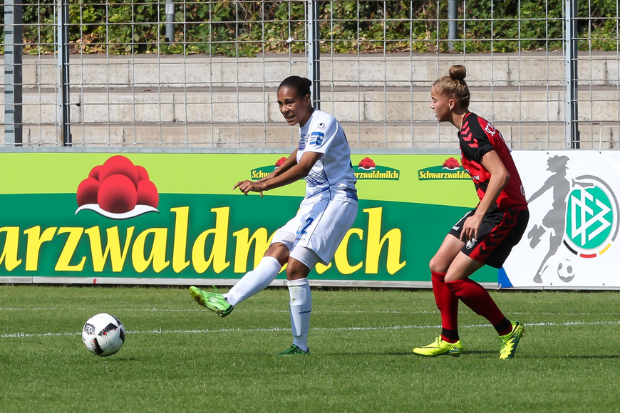 Nach einem Blitzstart der Freiburgerinnen lag der Aufsteiger aus Duisburg früh mit 0:2 im Rückstand. Die Tore von Lena Petermann (6.) und Lina Magull (9.) durchkreuzten die Pläne von Cheftrainerin Inka Grings, das Spiel möglichst lange torlos zu halten und der Mannschaft nach der Niederlage gegen Essen Sicherheit zu geben.
