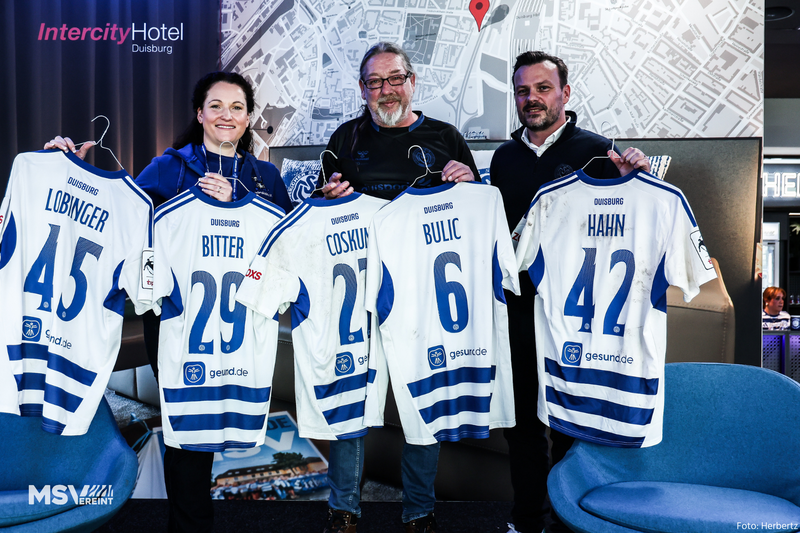 Trikotjäger und -sammler Pit Liss präsentierte im Vorfeld des Heimspiels unserer Meidericher Jungs gegen den 1. FC Saarbrücken am Sonntag, 8. März 2026, eine Rarität. Gleich fünf Zebra-Trikots brachte der Dauerkartenbesitzer auf die Bühne des Business-Bereichs der schauinsland-reisen-arena. Seine Botschaft: Die Streifen sollen nicht in meinem Schrank hängen, sondern Gutes bewirken.