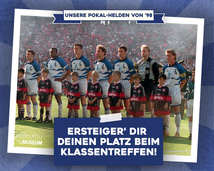 Eure 98er-Pokal-Helden – ihr könnt sie live erleben. Schon bei ihrem „Klassentreffen“ am Samstagabend, 20. Mai 2023, für das ihr 5 X 2 „Startplätze“ ersteigern könnt. Wie’s funktioniert, lest ihr hier.