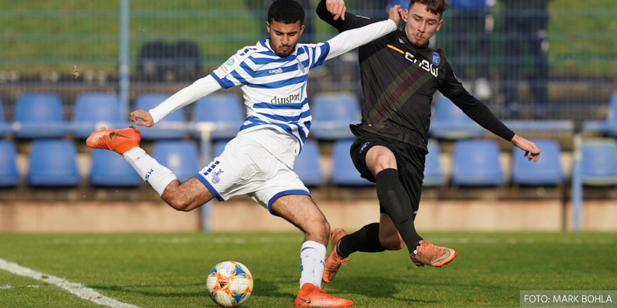 Noch zwei Wochen im Kalender müssen die Jungs der U19 mit MSV-Coach Engin Vural abstreichen, bis es in der A-Junioren-Bundesliga West weitergeht. Doch davor treffen unsere Zebras am Donnerstag, 23. Januar 2020, im Niederrhein-Pokal auf den GSV Moers (19 Uhr). Den jüngsten Test gegen den Karlsruher SC verloren unsere Nachwuchskicker mit 1:2 (1:1).