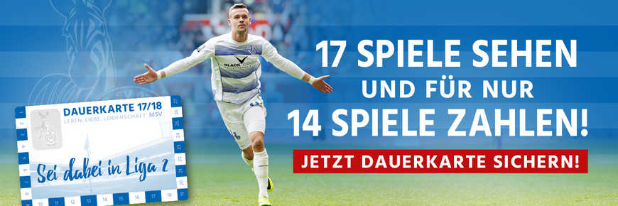 Der MSV Duisburg startet am Donnerstag, 1. Juni 2017, den Verkauf von Dauerkarten für die neue Saison. Eine Stehplatz-Dauerkarte für die König-Pilsener Fan-Kurve gibt es schon für nur 182 Euro, das günstigste Sitzplatz-Saisonticket kostet nur 308 Euro!