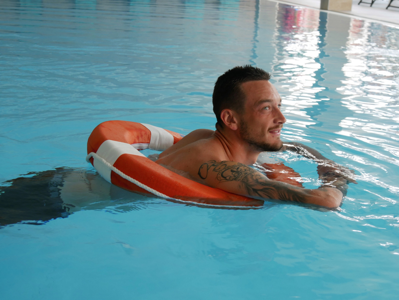 Am Tag nach dem souveränen 3:0 über die U23 von Borussia Dortmund standen wieder zwei Einheiten auf dem grünen Rasen auf dem Programm. Am Freitagvormittag, 13. Juli 2018, nicht dabei: die angeschlagenen Enis Hajri und Boris Tashchy, die im Hotel Kaiserfels mit Physio Timo Kleinefehn bei der Wassergymnastik regenerierten.
