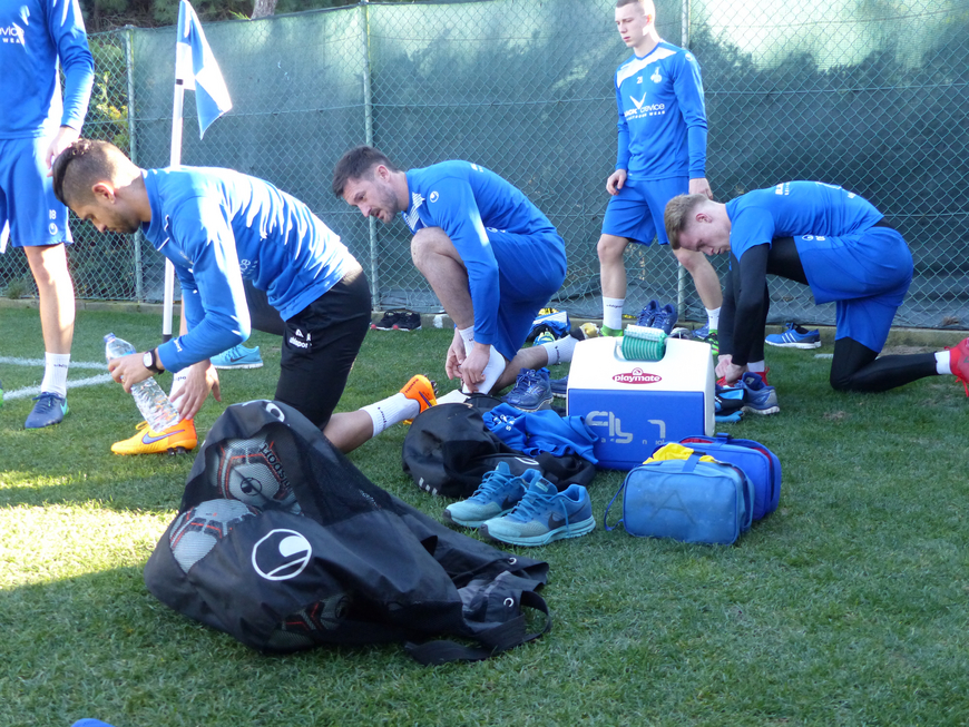 +++ Nach der späten Ankunft am Donnerstagabend ließ Cheftrainer Ilia Gruev seine Mannschaft etwas länger schlafen. Um 9:00 Uhr trafen sich die Zebras zunächst zum Frühstück, ehe es dann um 10:30 Uhr in Richtung Rasenplatz ging, der nur wenige Gehminuten entfernt vom Hotel liegt. Dort hieß es zunächst: Die Müdigkeit und die lange Anreise aus den Beinen schütteln.