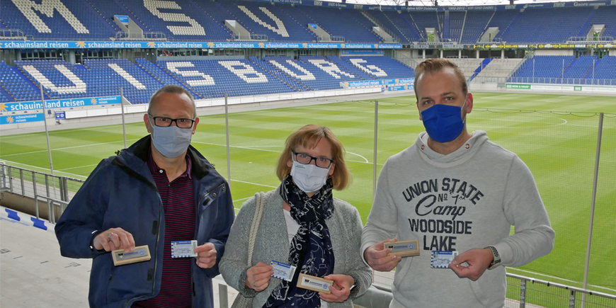 Die Solidarität in Duisburg ist auch in diesen Tagen wieder einmalig, das ist immer wieder in ganz vielen Aktionen zu spüren. „Wir helfen gerne, wo es nur geht!“, verdeutlicht Melanie, seit über 30 Jahren Dauerkarten-Fan bei den Zebras. Sie tauscht mit Sohnemann Jonas ihre beiden Saisonkarten 2019/20 gegen den MSV-Stahlbarren ein. Töchterchen Mara ist als Unterstützung auch mit in der Nordkurve dabei.