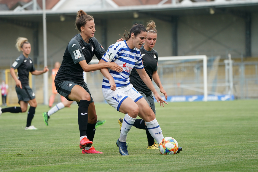 Duisburg verteidigte mit ganz viel Herz und Leidenschaft und versuchte immer wieder Akzente nach vorne zu setzen (17. Maksuti, 33. Morina). Die Hoffenheimerinnen kamen lange Zeit nicht durch das Duisburger Abwehrbollwerk durch. "Die Mädels haben es von der Moral und vom Kampf her wieder super gemacht. In der ersten Halbzeit haben wir auch ein, zwei Torannäherungen. Wir haben auch keine ganz großen Dinger zugelassen", lobt Cheftrainer Thomas Gerstner sein Team.