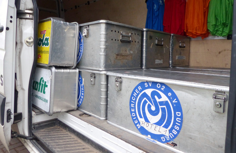 Bereits am Samstag machen sich Zeugwart Manni Piwonski und Physiotherapeut Oliver Grabwoski um vier Uhr in der Frühe mit dem Transporter auf nach Portugal. Mit knappen 1.500 Kilogramm Gepäck geht es die 2.700 Kilometer bis nach Almancil.