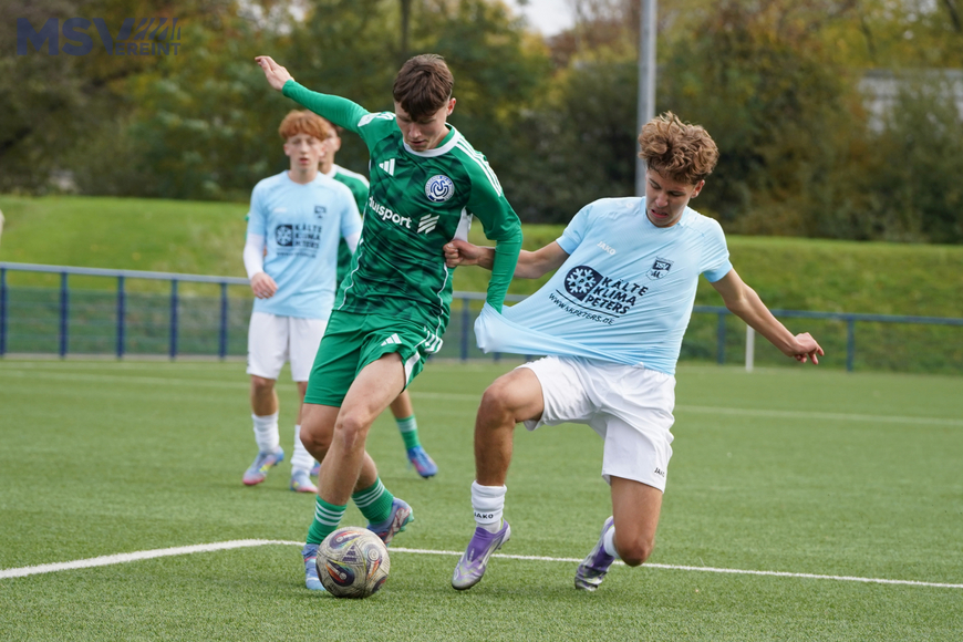 Beim Heimspiel am Sonntag, 26. Oktober 2025, treffen unsere B-Junioren in Meiderich nun auf den aktuellen Führenden der Gruppe G, den 1. FC Köln. „Meiner Meinung nach ist das unser stärkster Gegner. Köln hat mittlerweile ein Torverhältnis von 31:2. Im Hinspiel konnten wir es lange offen halten und sind erst ganz zum Schluss ein bisschen eingebrochen“, blickt Auf dem Kamp zurück.